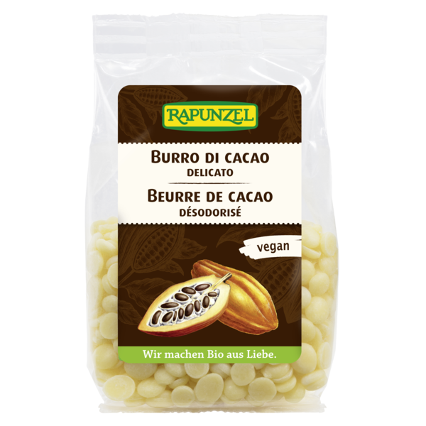 Le pur beurre de cacao désodorisé est neutre en goût et facile à doser grâce à sa présentation en pastilles.