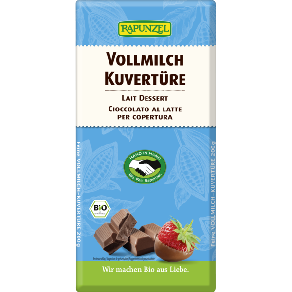 Que seraient les tendres pralinés, les fruits sucrés ou les gâteaux sans ce glaçage fondant ? L'arôme merveilleux du cacao, le lait entier et la touche de vanille Bourbon sublimeront vos gâteaux, pâtisseries et pralinés. Le cacao et le sucre sont issus du programme HAND IN HAND de Rapunzel qui allie écologie et commerce équitable.