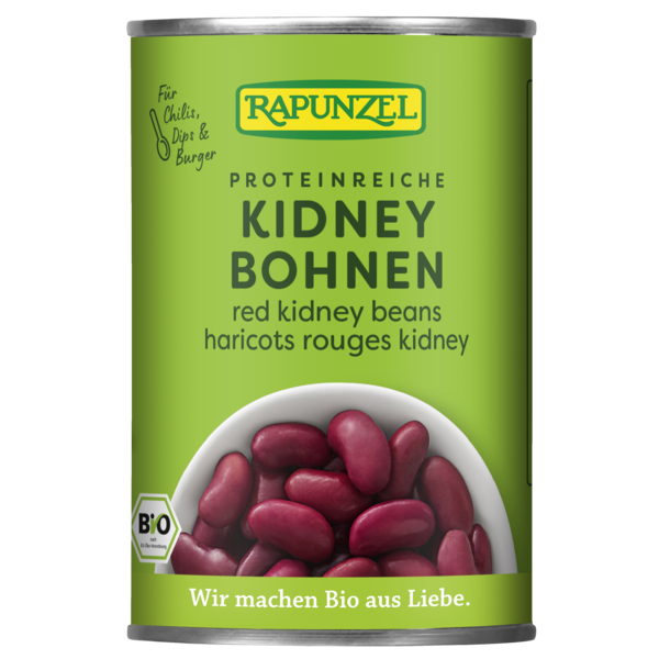 Haricots rouges Kidney prêts à l'emploi pour une cuisine bio rapide. On évite le temps de trempage et de cuisson puisque les haricots ont déjà été précuits doucement. Avec leur léger goût de noisette et leur saveur sucrée, les haricots Kidney se marient parfaitement avec les préparations épicées mais ils peuvent également être utilisés dans les pâtisseries.
