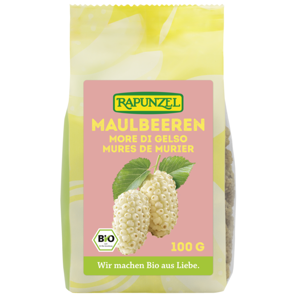 Les fruits du mûrier, dont la couleur va du blanc au rouge, ressemblent aux mûres de ronce. Les mûres blanches de Rapunzel sont délicieusement parfumées et ont un agréable goût sucré proche du miel.