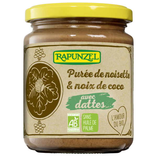 Rapunzel dispose d'un savoir-faire de plus de 40 ans pour l'élaboration des purées de fruits à coque. Tout l'arôme des noisettes est libéré grâce à une torréfaction douce à l'air chaud produit par des énergies renouvelables. Elles sont ensuite finement moulues avec la noix de coco exotique râpée et les dattes fruitées. Une production soignée vous garantit ce goût unique.