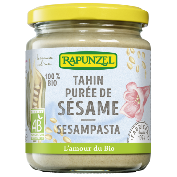 Rapunzel fabrique des purées de fruits à coque depuis 1974. Le tahin est fabriqué avec graines de sésame complet et des graines de sésame décortiquées. Les graines de sésame de qualité bio supérieure sont d'abord délicatement torréfiées puis finement moulues. Ce savoir-faire garantit un arôme intense et un goût unique.